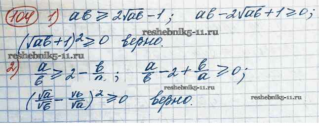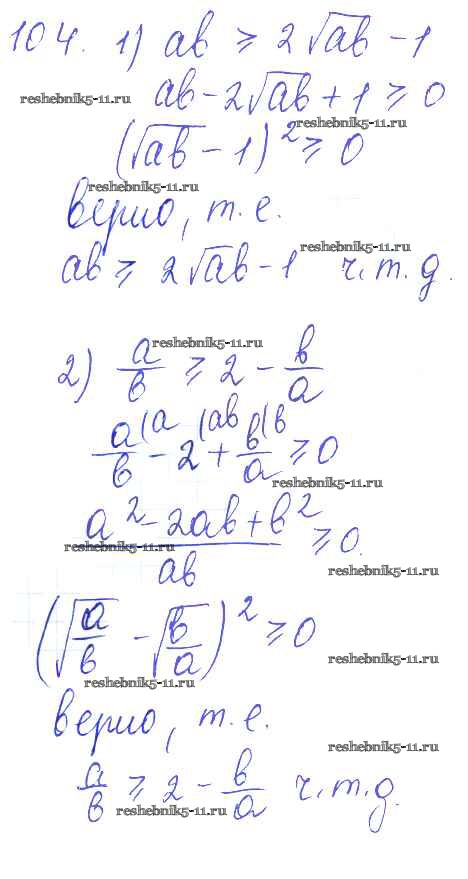 Готовая домашняя работа с ответами по Алгебре за 10 класс Колягин, Ткачёва, Федорова, Шабунин Учебник Базовый и углубленный уровень Просвещение 2017 ФГОС - Упражнения 104