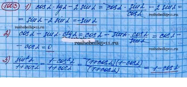Готовая домашняя работа с ответами по Алгебре за 10 класс Колягин, Ткачёва, Федорова, Шабунин Учебник Базовый и углубленный уровень Просвещение 2017 ФГОС - Упражнения 1003
