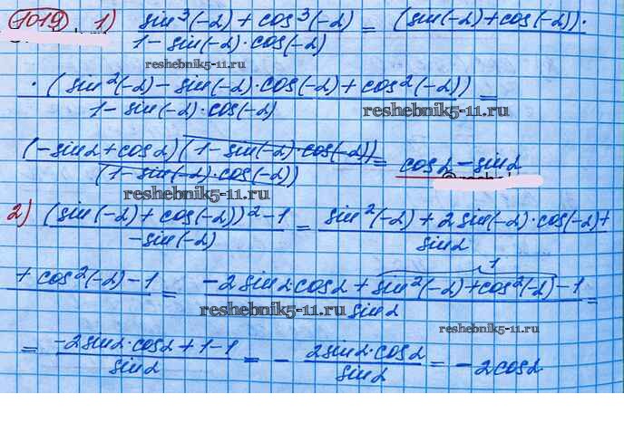 Готовая домашняя работа с ответами по Алгебре за 10 класс Колягин, Ткачёва, Федорова, Шабунин Учебник Базовый и углубленный уровень Просвещение 2017 ФГОС - Упражнения 1019