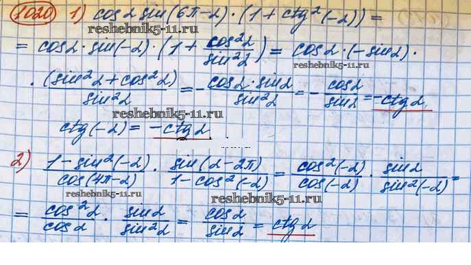 Готовая домашняя работа с ответами по Алгебре за 10 класс Колягин, Ткачёва, Федорова, Шабунин Учебник Базовый и углубленный уровень Просвещение 2017 ФГОС - Упражнения 1020