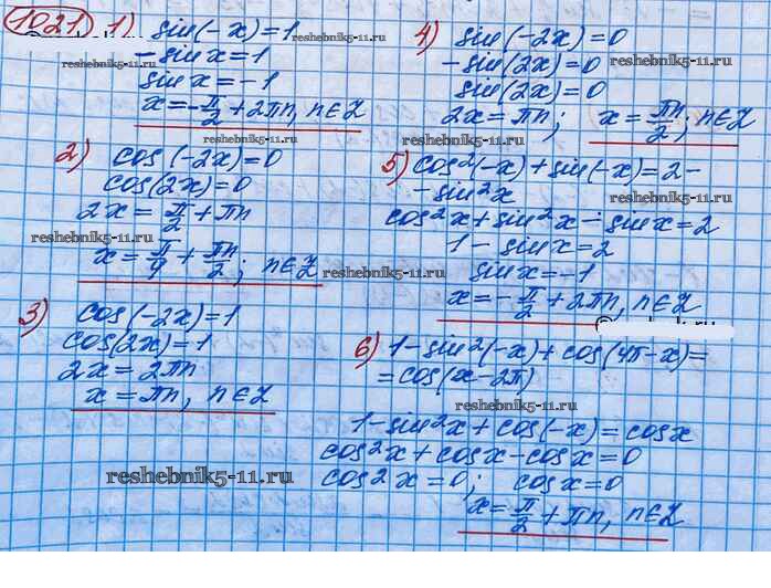 Готовая домашняя работа с ответами по Алгебре за 10 класс Колягин, Ткачёва, Федорова, Шабунин Учебник Базовый и углубленный уровень Просвещение 2017 ФГОС - Упражнения 1021