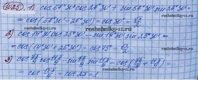 Готовая домашняя работа с ответами по Алгебре за 10 класс Колягин, Ткачёва, Федорова, Шабунин Учебник Базовый и углубленный уровень Просвещение 2017 ФГОС - Упражнения 1025
