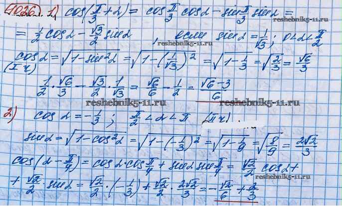 Готовая домашняя работа с ответами по Алгебре за 10 класс Колягин, Ткачёва, Федорова, Шабунин Учебник Базовый и углубленный уровень Просвещение 2017 ФГОС - Упражнения 1026