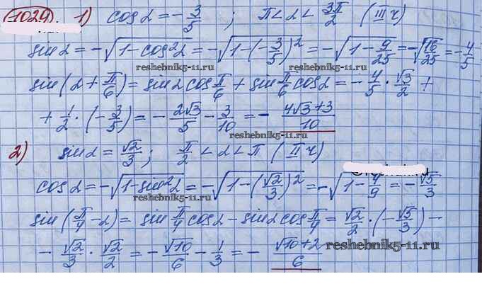 Готовая домашняя работа с ответами по Алгебре за 10 класс Колягин, Ткачёва, Федорова, Шабунин Учебник Базовый и углубленный уровень Просвещение 2017 ФГОС - Упражнения 1029