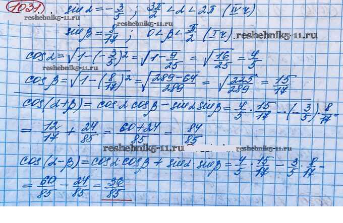 Готовая домашняя работа с ответами по Алгебре за 10 класс Колягин, Ткачёва, Федорова, Шабунин Учебник Базовый и углубленный уровень Просвещение 2017 ФГОС - Упражнения 1031