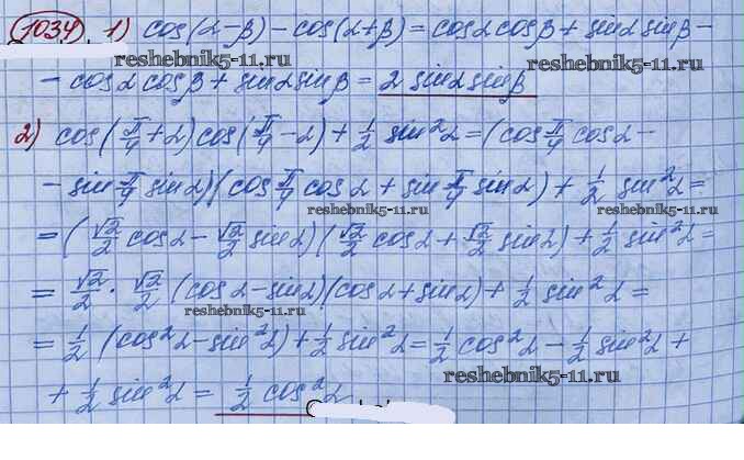 Готовая домашняя работа с ответами по Алгебре за 10 класс Колягин, Ткачёва, Федорова, Шабунин Учебник Базовый и углубленный уровень Просвещение 2017 ФГОС - Упражнения 1034