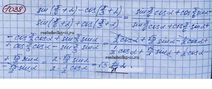 Готовая домашняя работа с ответами по Алгебре за 10 класс Колягин, Ткачёва, Федорова, Шабунин Учебник Базовый и углубленный уровень Просвещение 2017 ФГОС - Упражнения 1038