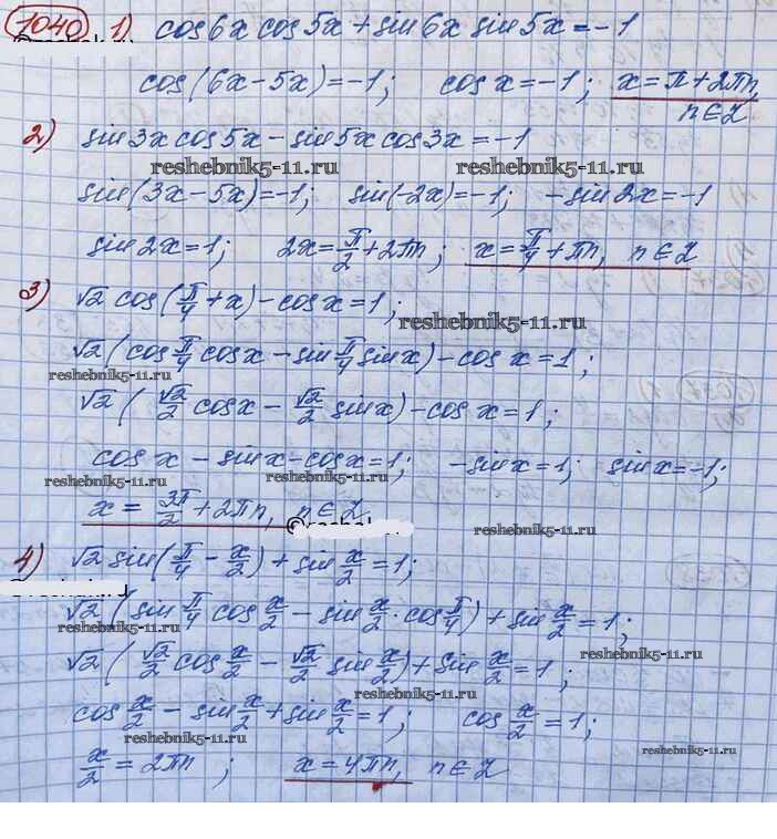 Готовая домашняя работа с ответами по Алгебре за 10 класс Колягин, Ткачёва, Федорова, Шабунин Учебник Базовый и углубленный уровень Просвещение 2017 ФГОС - Упражнения 1040