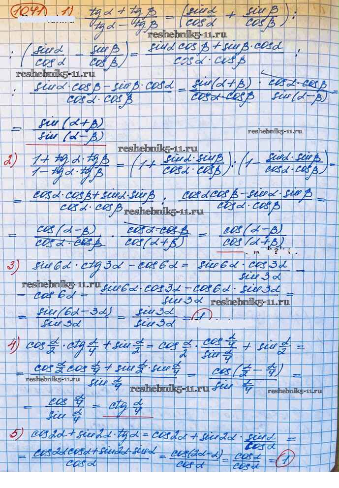 Готовая домашняя работа с ответами по Алгебре за 10 класс Колягин, Ткачёва, Федорова, Шабунин Учебник Базовый и углубленный уровень Просвещение 2017 ФГОС - Упражнения 1041