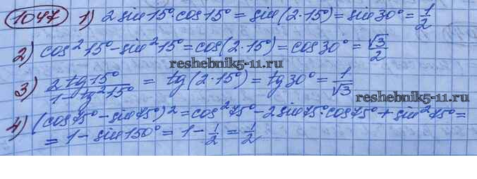 Готовая домашняя работа с ответами по Алгебре за 10 класс Колягин, Ткачёва, Федорова, Шабунин Учебник Базовый и углубленный уровень Просвещение 2017 ФГОС - Упражнения 1047
