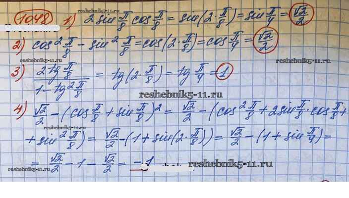 Алгебра за 10 класс Колягин Учебник Базовый и углубленный уровень Просвещение упражнение № 1048