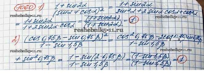 Готовая домашняя работа с ответами по Алгебре за 10 класс Колягин, Ткачёва, Федорова, Шабунин Учебник Базовый и углубленный уровень Просвещение 2017 ФГОС - Упражнения 1060