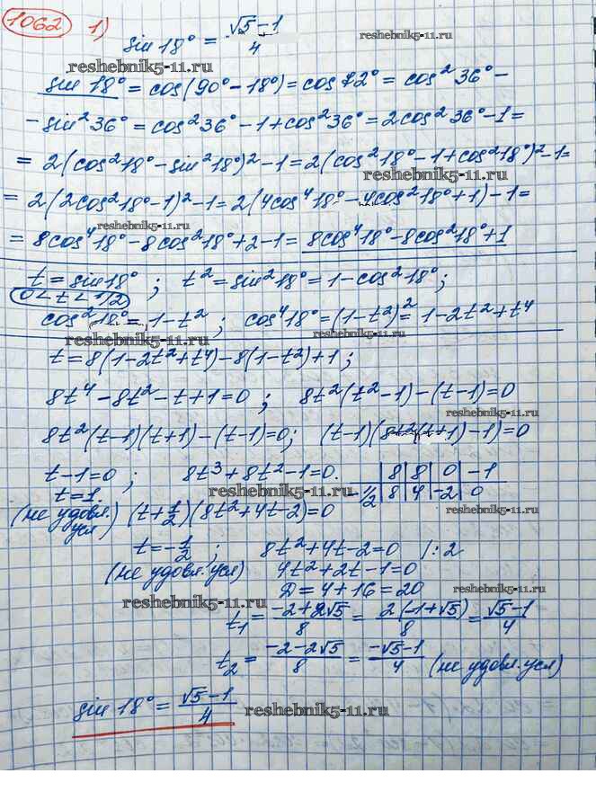 Готовая домашняя работа с ответами по Алгебре за 10 класс Колягин, Ткачёва, Федорова, Шабунин Учебник Базовый и углубленный уровень Просвещение 2017 ФГОС - Упражнения 1062