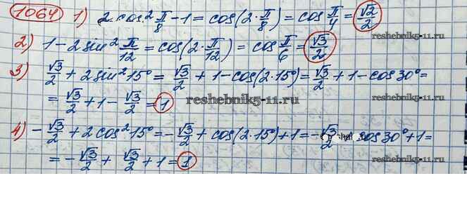 Готовая домашняя работа с ответами по Алгебре за 10 класс Колягин, Ткачёва, Федорова, Шабунин Учебник Базовый и углубленный уровень Просвещение 2017 ФГОС - Упражнения 1064