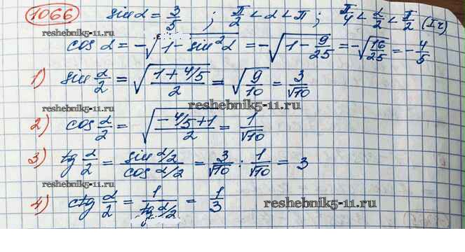Готовая домашняя работа с ответами по Алгебре за 10 класс Колягин, Ткачёва, Федорова, Шабунин Учебник Базовый и углубленный уровень Просвещение 2017 ФГОС - Упражнения 1066