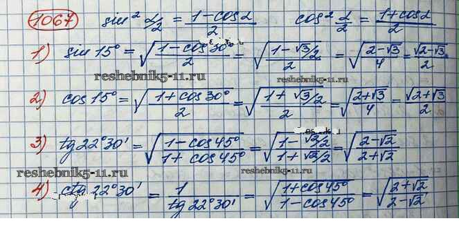 Готовая домашняя работа с ответами по Алгебре за 10 класс Колягин, Ткачёва, Федорова, Шабунин Учебник Базовый и углубленный уровень Просвещение 2017 ФГОС - Упражнения 1067
