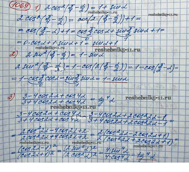 Готовая домашняя работа с ответами по Алгебре за 10 класс Колягин, Ткачёва, Федорова, Шабунин Учебник Базовый и углубленный уровень Просвещение 2017 ФГОС - Упражнения 1069