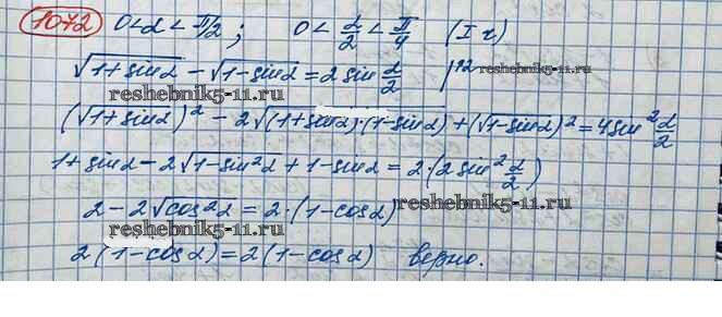 Готовая домашняя работа с ответами по Алгебре за 10 класс Колягин, Ткачёва, Федорова, Шабунин Учебник Базовый и углубленный уровень Просвещение 2017 ФГОС - Упражнения 1072
