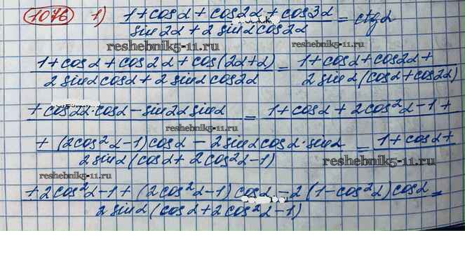 Готовая домашняя работа с ответами по Алгебре за 10 класс Колягин, Ткачёва, Федорова, Шабунин Учебник Базовый и углубленный уровень Просвещение 2017 ФГОС - Упражнения 1076