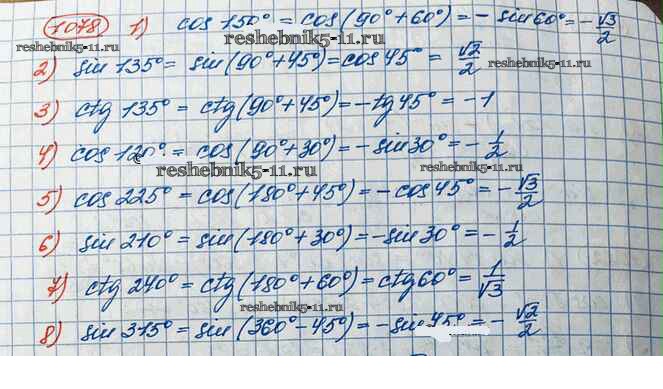 Готовая домашняя работа с ответами по Алгебре за 10 класс Колягин, Ткачёва, Федорова, Шабунин Учебник Базовый и углубленный уровень Просвещение 2017 ФГОС - Упражнения 1078