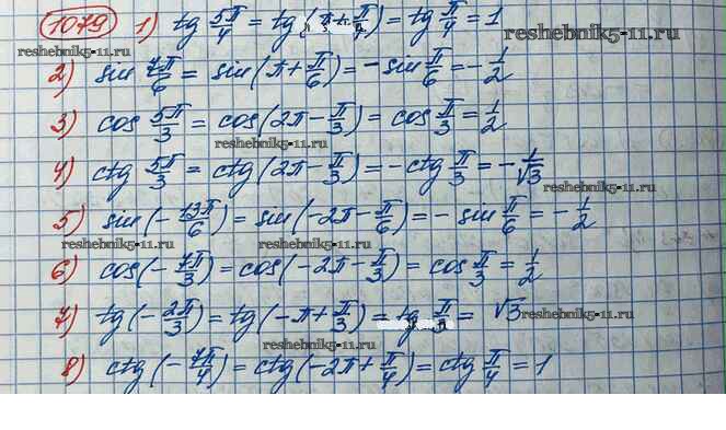 Готовая домашняя работа с ответами по Алгебре за 10 класс Колягин, Ткачёва, Федорова, Шабунин Учебник Базовый и углубленный уровень Просвещение 2017 ФГОС - Упражнения 1079