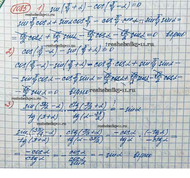Готовая домашняя работа с ответами по Алгебре за 10 класс Колягин, Ткачёва, Федорова, Шабунин Учебник Базовый и углубленный уровень Просвещение 2017 ФГОС - Упражнения 1085