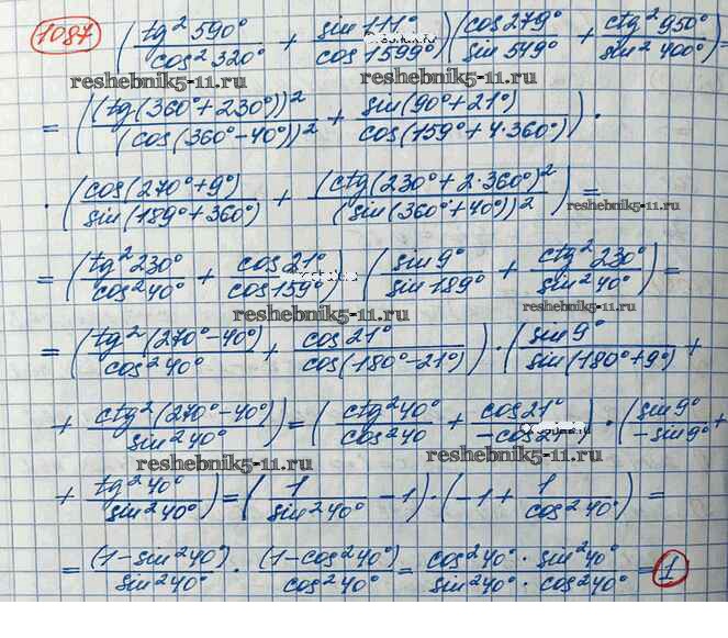 Готовая домашняя работа с ответами по Алгебре за 10 класс Колягин, Ткачёва, Федорова, Шабунин Учебник Базовый и углубленный уровень Просвещение 2017 ФГОС - Упражнения 1087