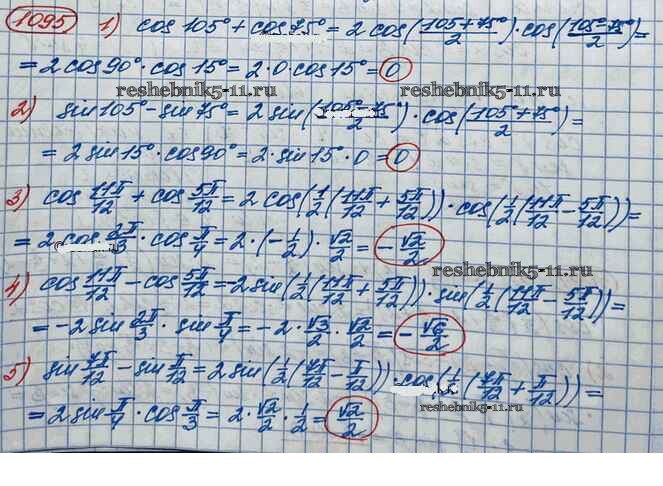 Готовая домашняя работа с ответами по Алгебре за 10 класс Колягин, Ткачёва, Федорова, Шабунин Учебник Базовый и углубленный уровень Просвещение 2017 ФГОС - Упражнения 1095