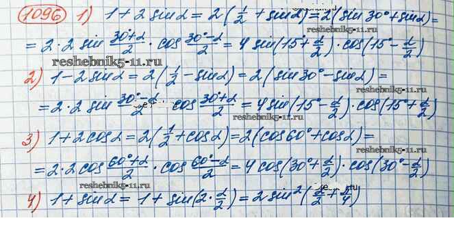 Готовая домашняя работа с ответами по Алгебре за 10 класс Колягин, Ткачёва, Федорова, Шабунин Учебник Базовый и углубленный уровень Просвещение 2017 ФГОС - Упражнения 1096