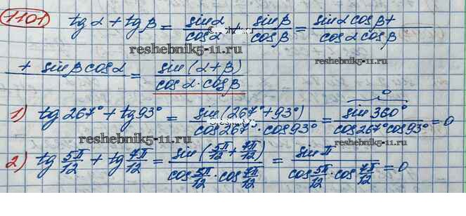 Готовая домашняя работа с ответами по Алгебре за 10 класс Колягин, Ткачёва, Федорова, Шабунин Учебник Базовый и углубленный уровень Просвещение 2017 ФГОС - Упражнения 1101