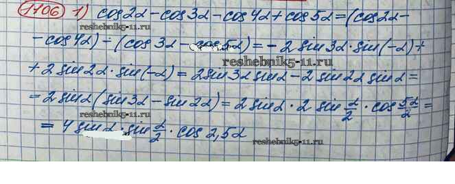 Готовая домашняя работа с ответами по Алгебре за 10 класс Колягин, Ткачёва, Федорова, Шабунин Учебник Базовый и углубленный уровень Просвещение 2017 ФГОС - Упражнения 1106