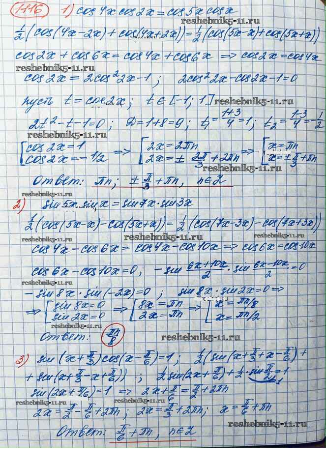 Готовая домашняя работа с ответами по Алгебре за 10 класс Колягин, Ткачёва, Федорова, Шабунин Учебник Базовый и углубленный уровень Просвещение 2017 ФГОС - Упражнения 1116