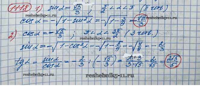 Готовая домашняя работа с ответами по Алгебре за 10 класс Колягин, Ткачёва, Федорова, Шабунин Учебник Базовый и углубленный уровень Просвещение 2017 ФГОС - Упражнения 1118
