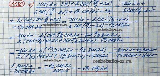 Готовая домашняя работа с ответами по Алгебре за 10 класс Колягин, Ткачёва, Федорова, Шабунин Учебник Базовый и углубленный уровень Просвещение 2017 ФГОС - Упражнения 1130