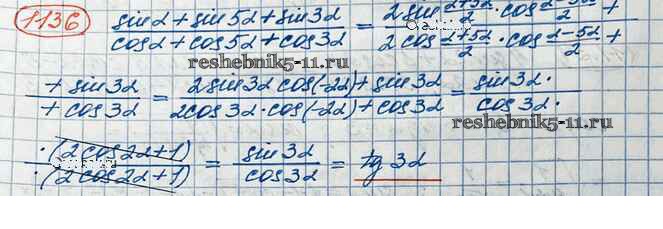 Готовая домашняя работа с ответами по Алгебре за 10 класс Колягин, Ткачёва, Федорова, Шабунин Учебник Базовый и углубленный уровень Просвещение 2017 ФГОС - Упражнения 1136
