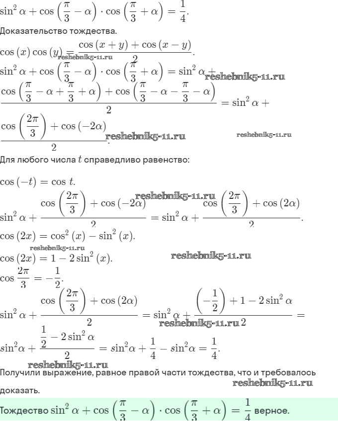 Готовая домашняя работа с ответами по Алгебре за 10 класс Колягин, Ткачёва, Федорова, Шабунин Учебник Базовый и углубленный уровень Просвещение 2017 ФГОС - Упражнения 1138