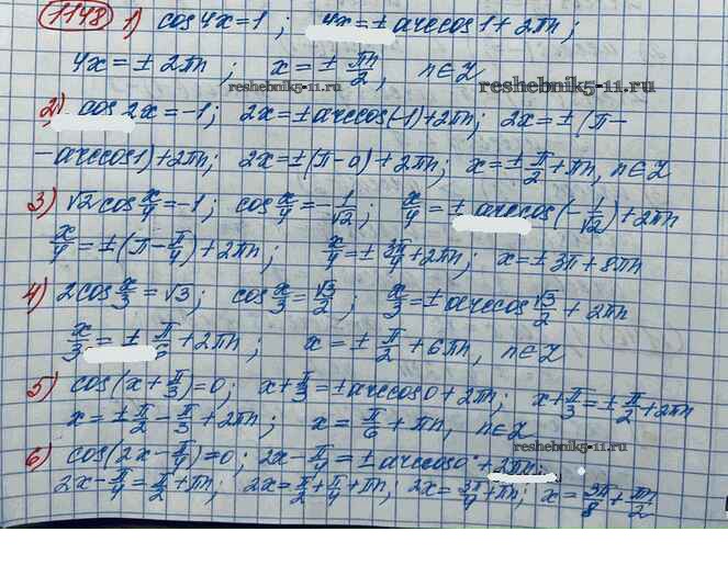 Готовая домашняя работа с ответами по Алгебре за 10 класс Колягин, Ткачёва, Федорова, Шабунин Учебник Базовый и углубленный уровень Просвещение 2017 ФГОС - Упражнения 1148