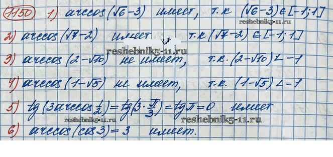 Готовая домашняя работа с ответами по Алгебре за 10 класс Колягин, Ткачёва, Федорова, Шабунин Учебник Базовый и углубленный уровень Просвещение 2017 ФГОС - Упражнения 1150