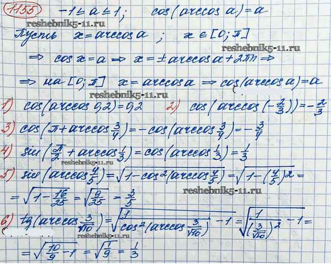 Готовая домашняя работа с ответами по Алгебре за 10 класс Колягин, Ткачёва, Федорова, Шабунин Учебник Базовый и углубленный уровень Просвещение 2017 ФГОС - Упражнения 1155