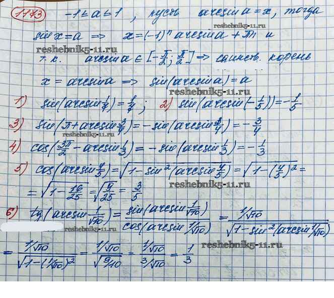 Готовая домашняя работа с ответами по Алгебре за 10 класс Колягин, Ткачёва, Федорова, Шабунин Учебник Базовый и углубленный уровень Просвещение 2017 ФГОС - Упражнения 1173