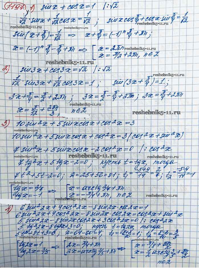 Готовая домашняя работа с ответами по Алгебре за 10 класс Колягин, Ткачёва, Федорова, Шабунин Учебник Базовый и углубленный уровень Просвещение 2017 ФГОС - Упражнения 1197