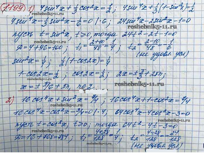Готовая домашняя работа с ответами по Алгебре за 10 класс Колягин, Ткачёва, Федорова, Шабунин Учебник Базовый и углубленный уровень Просвещение 2017 ФГОС - Упражнения 1199