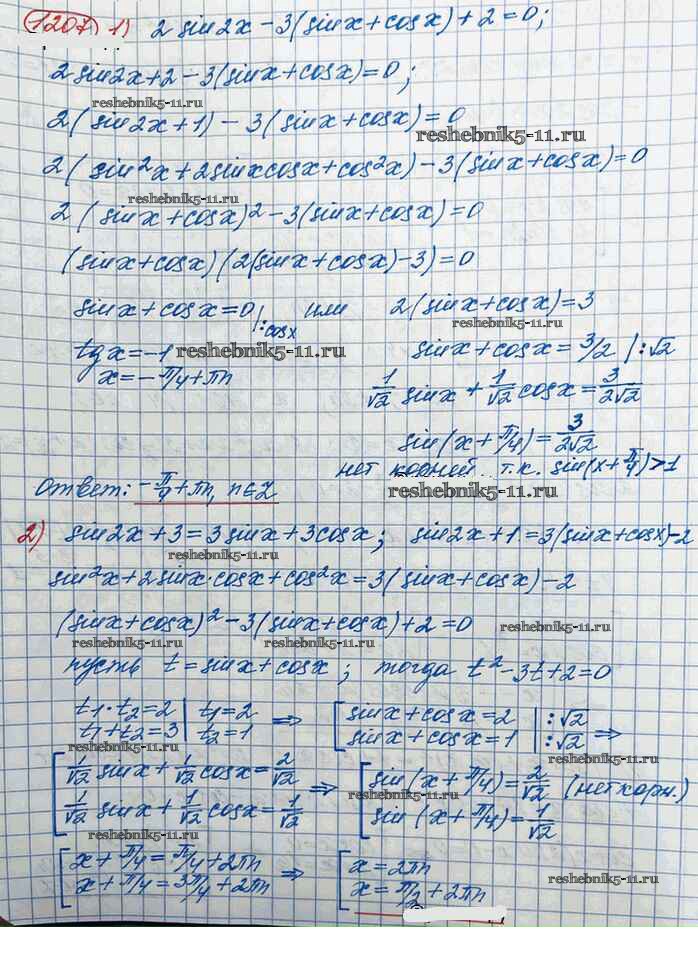 Готовая домашняя работа с ответами по Алгебре за 10 класс Колягин, Ткачёва, Федорова, Шабунин Учебник Базовый и углубленный уровень Просвещение 2017 ФГОС - Упражнения 1207