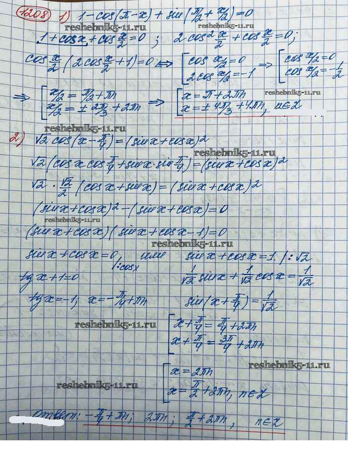 Готовая домашняя работа с ответами по Алгебре за 10 класс Колягин, Ткачёва, Федорова, Шабунин Учебник Базовый и углубленный уровень Просвещение 2017 ФГОС - Упражнения 1208