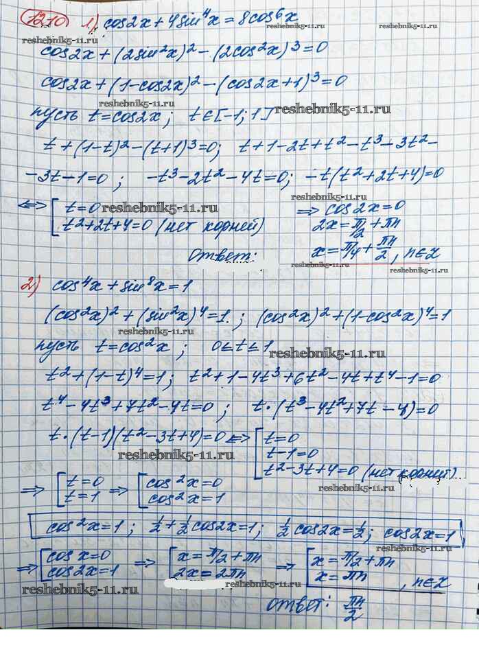 Готовая домашняя работа с ответами по Алгебре за 10 класс Колягин, Ткачёва, Федорова, Шабунин Учебник Базовый и углубленный уровень Просвещение 2017 ФГОС - Упражнения 1210