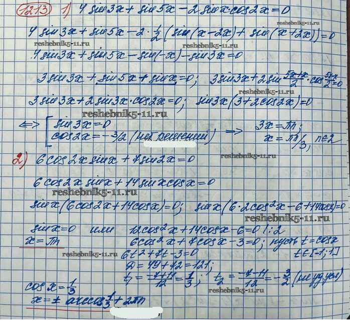 Алгебра за 10 класс Колягин Учебник Базовый и углубленный уровень Просвещение упражнение № 1213