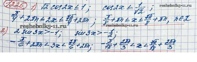 Готовая домашняя работа с ответами по Алгебре за 10 класс Колягин, Ткачёва, Федорова, Шабунин Учебник Базовый и углубленный уровень Просвещение 2017 ФГОС - Упражнения 1225