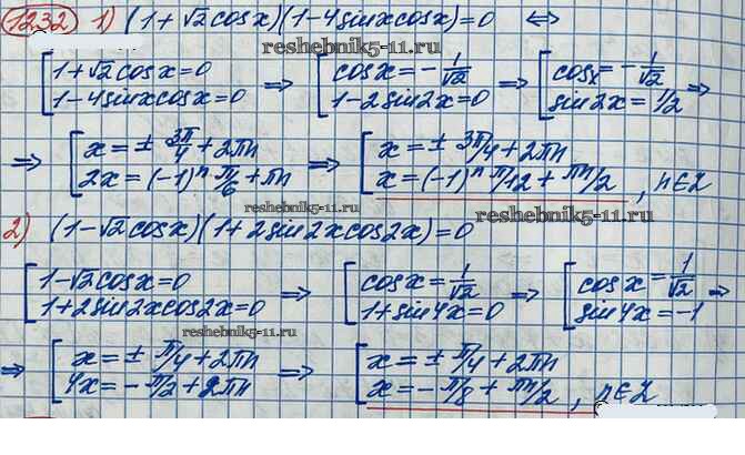 Готовая домашняя работа с ответами по Алгебре за 10 класс Колягин, Ткачёва, Федорова, Шабунин Учебник Базовый и углубленный уровень Просвещение 2017 ФГОС - Упражнения 1232