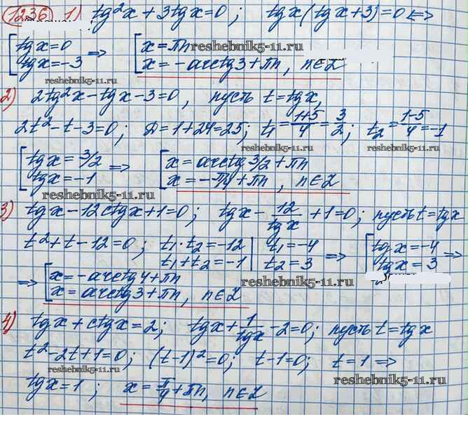 Готовая домашняя работа с ответами по Алгебре за 10 класс Колягин, Ткачёва, Федорова, Шабунин Учебник Базовый и углубленный уровень Просвещение 2017 ФГОС - Упражнения 1236