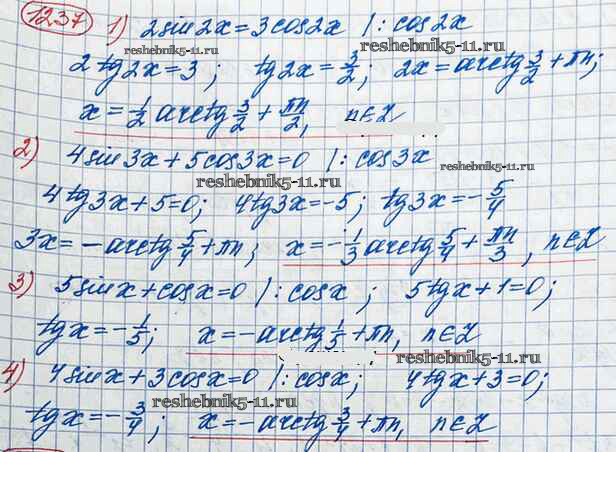 Готовая домашняя работа с ответами по Алгебре за 10 класс Колягин, Ткачёва, Федорова, Шабунин Учебник Базовый и углубленный уровень Просвещение 2017 ФГОС - Упражнения 1237